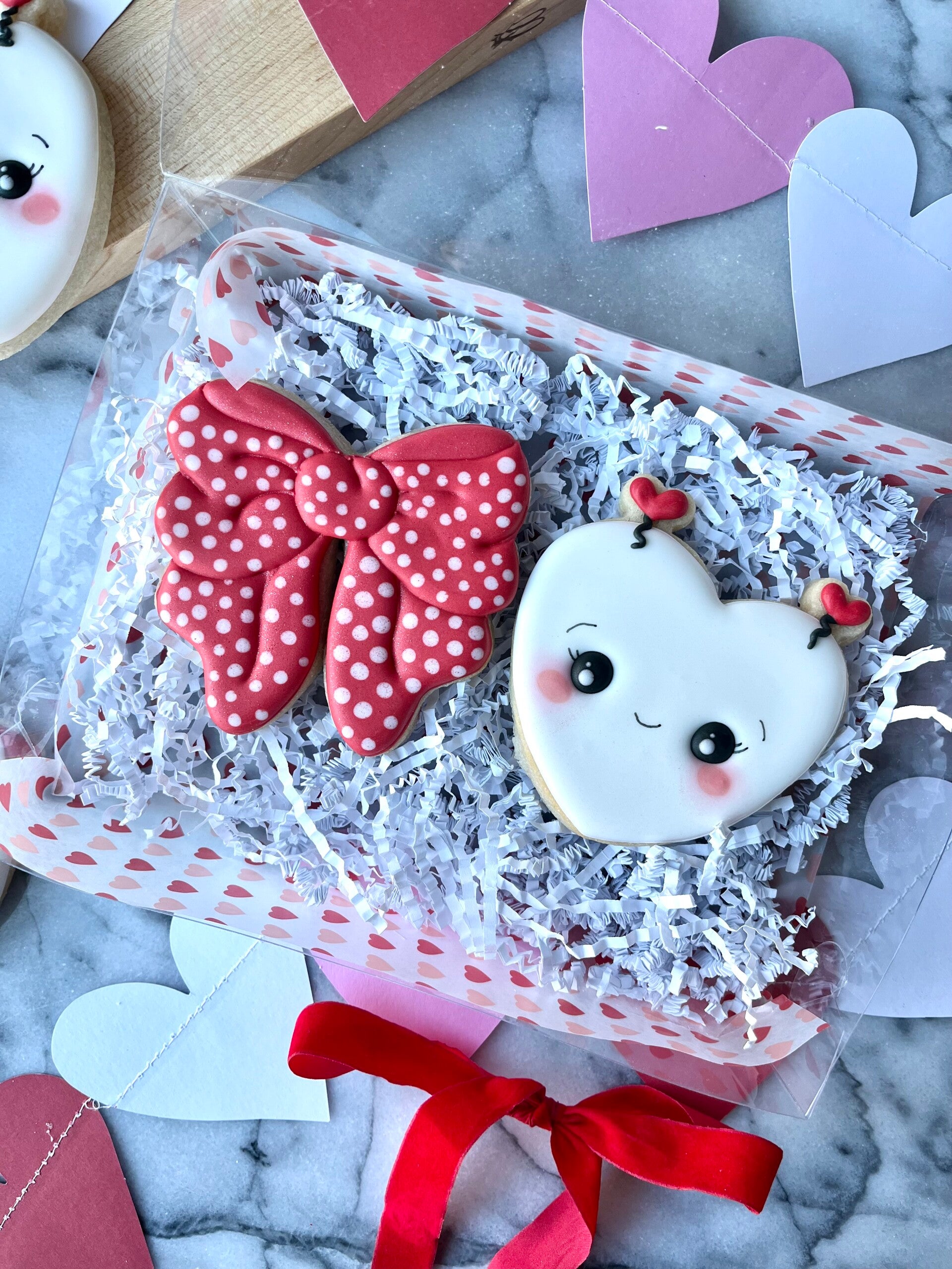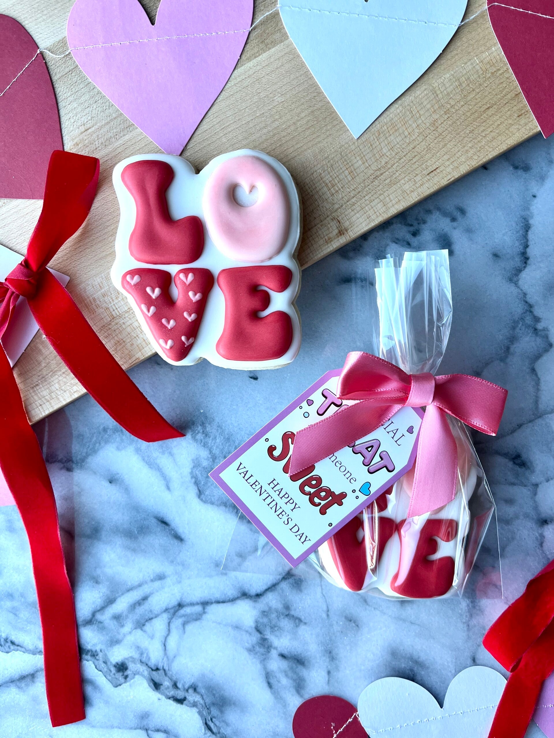 Enjoy delicious, buttery sugar cookies topped with smooth royal icing! Each cookie is beautifully decorated and perfect for Valentine’s Day. 💕